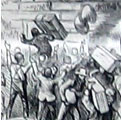PAUL HOGARTH - Defiant People, Drawings of Greece Today, 1953 A disciple of British socialist artist James Boswell, Arthur Boyd Houghton’s biographer and an early explorer in the field of drawn reportage („The Artist as Reporter“, London 1967), Paul Hogarth became known as the most prolific graphic documentarist of the Cold War era. „Defiant People“, the first sketchbook he published, deals with the post-war situation in Greece. Its central part is a rendition of the trial of Tony Ambatielos, a communist trade union leader, who was facing execution by the US-supported military regime of Marshal Papagos. Hogarth’s early publications were widely spread behind the „Iron Curtain“. The MePri Collection holds a fascinating Chinese version. >start slideshow ![]() |